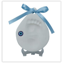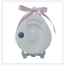 Şık tasarımıyla bebeğinizin minik el ve ayak izlerinden oluşan nazarlığı evinizin istediğiniz bir köşesini renklendirmek için kullanabilirsiniz.
