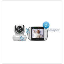 Tam renkli 3.5” köşegen LCD ekran bebeğinizin odasında gerçek zamanlı video ve ses yayını yapmaktadır. MBP36S Bebek İzleme Sistemi üzerindeki 5 adet LED ışığı odadaki ses faaliyeti seviyesini gösterir. Görsel veya sesli olarak bebeğinizin odasında neler olduğundan haberdar olursunuz.